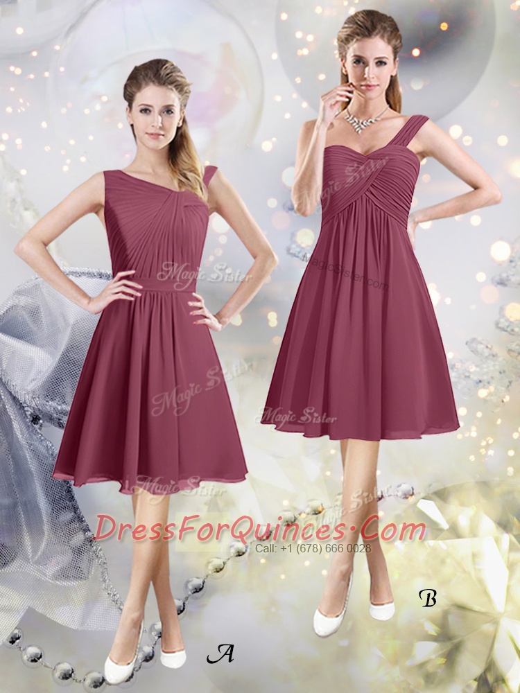 A-line Dama Dress Burgundy Asymmetric Chiffon Sleeveless Knee Length Zipper