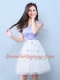 A-line Damas Dress White V-neck Tulle Cap Sleeves Knee Length Lace Up