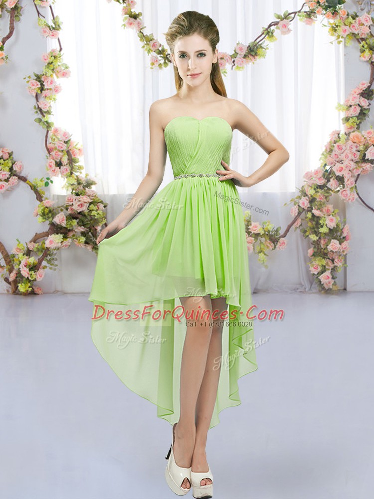 Amazing High Low Lace Up Quinceanera Court of Honor Dress Yellow Green for Wedding Party with Beading