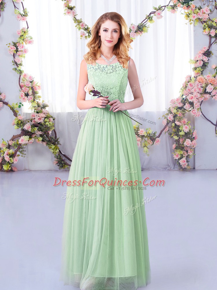 Apple Green Sleeveless Floor Length Lace and Belt Side Zipper Court Dresses for Sweet 16