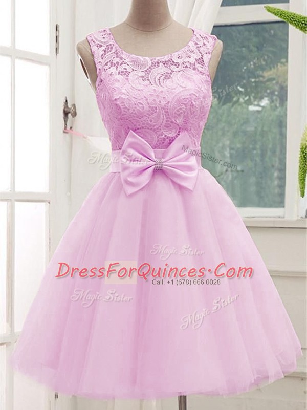 Beauteous Sleeveless Lace Up Knee Length Lace and Bowknot Dama Dress