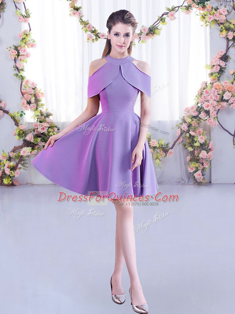 Beautiful Ruching Vestidos de Damas Lavender Zipper Short Sleeves Mini Length