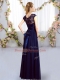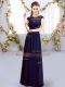 Cap Sleeves Zipper Floor Length Lace and Belt Dama Dress