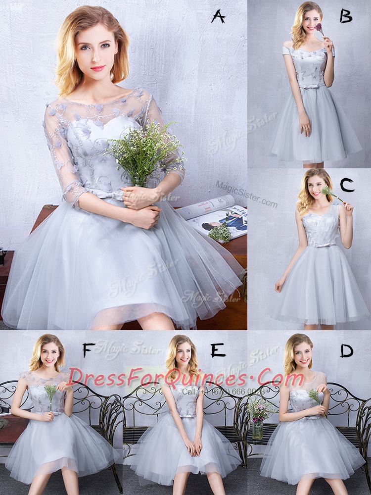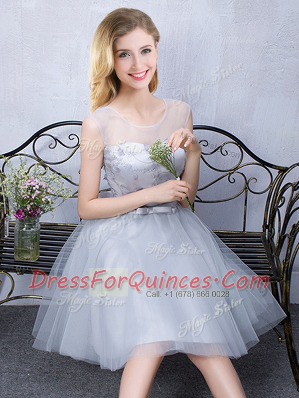 Clearance Scoop Grey Sleeveless Tulle Lace Up Vestidos de Damas for Prom and Party and Wedding Party
