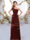 Custom Fit Brown Zipper One Shoulder Ruching Dama Dress for Quinceanera Chiffon Sleeveless