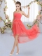 Custom Made Beading Quinceanera Dama Dress Watermelon Red Lace Up Sleeveless High Low