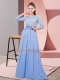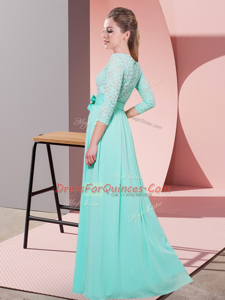 Customized Lavender 3 4 Length Sleeve Floor Length Lace and Belt Side Zipper Quinceanera Dama Dress