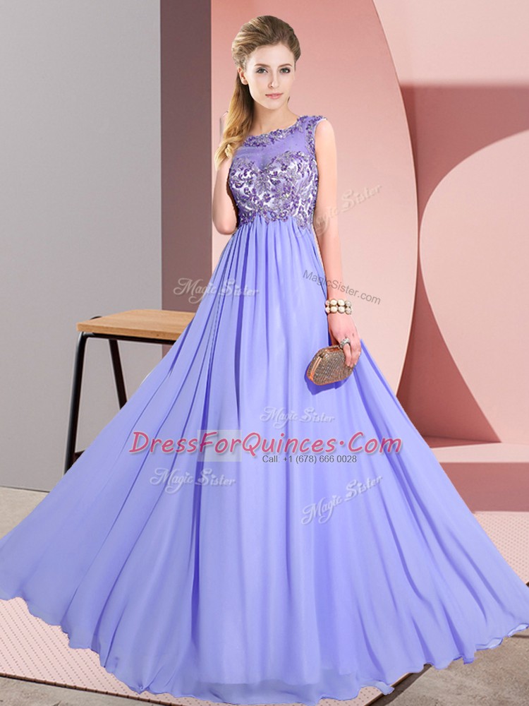 Decent Lavender Sleeveless Chiffon Backless Vestidos de Damas for Wedding Party