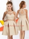 Designer Knee Length Zipper Vestidos de Damas Champagne for Prom and Party with Lace