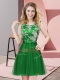 Edgy Green Tulle Side Zipper Scoop Sleeveless Mini Length Quinceanera Dama Dress Lace