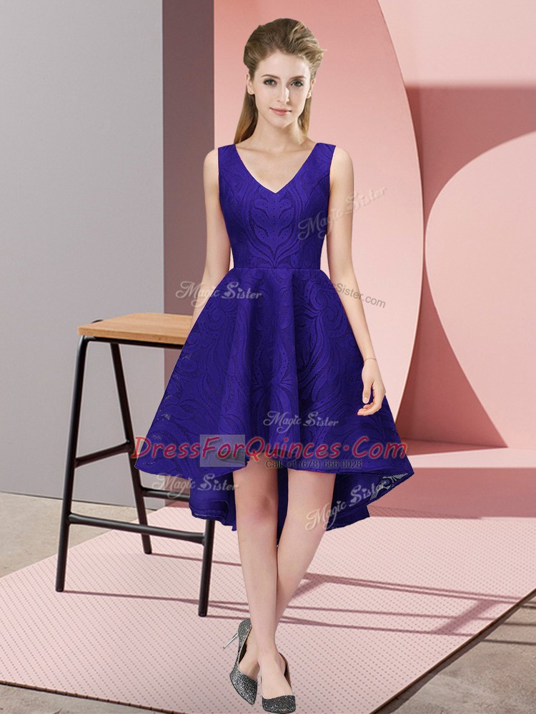 Edgy Purple Lace Zipper V-neck Sleeveless High Low Damas Dress Lace