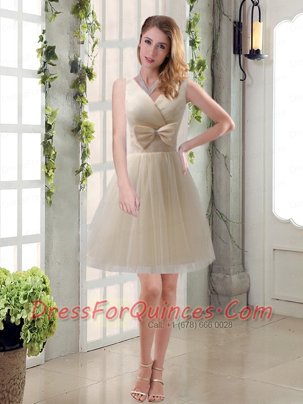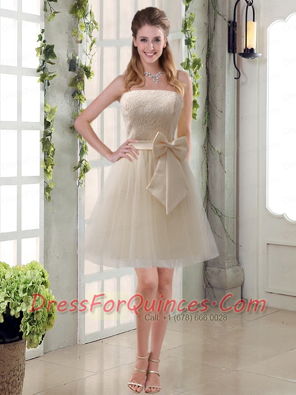 Elegant Princess Mini Length Lace Dama Dress with Bowknot