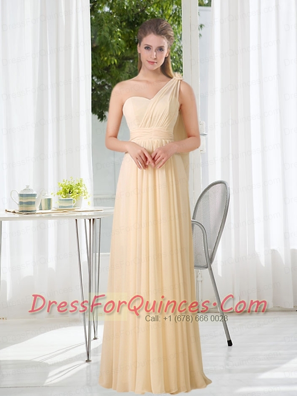 Empire One Shoulder Lace Up Dama Dresses with Ruching