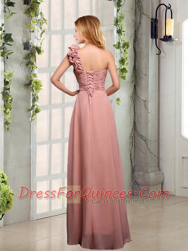 Empire Ruching One Shoulder Dama Dresses with Hand Made Flowers