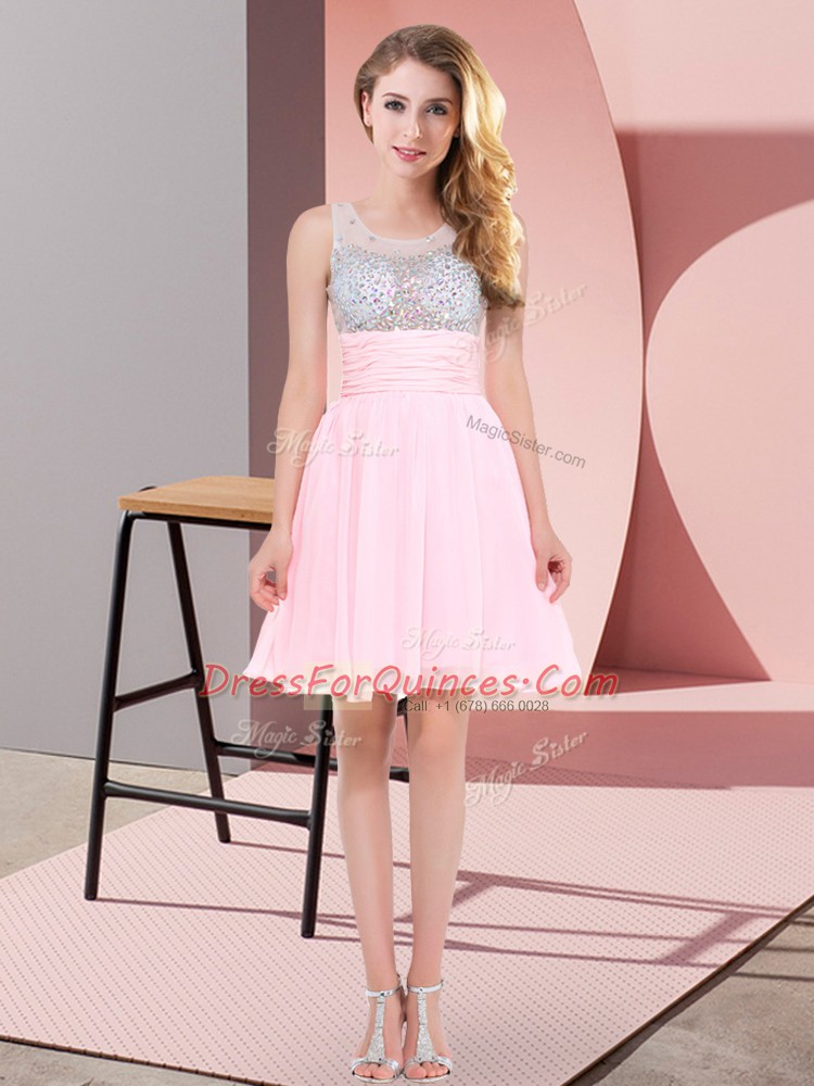 Empire Vestidos de Damas Baby Pink Scoop Chiffon Sleeveless Mini Length Side Zipper