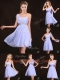 Enchanting One Shoulder Sleeveless Quinceanera Dama Dress Mini Length Ruching and Hand Made Flower Lavender Chiffon