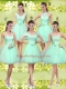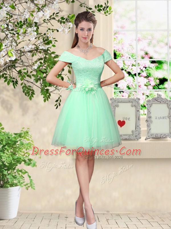 Fantastic Apple Green Lace Up Dama Dress Lace and Belt Sleeveless Knee Length