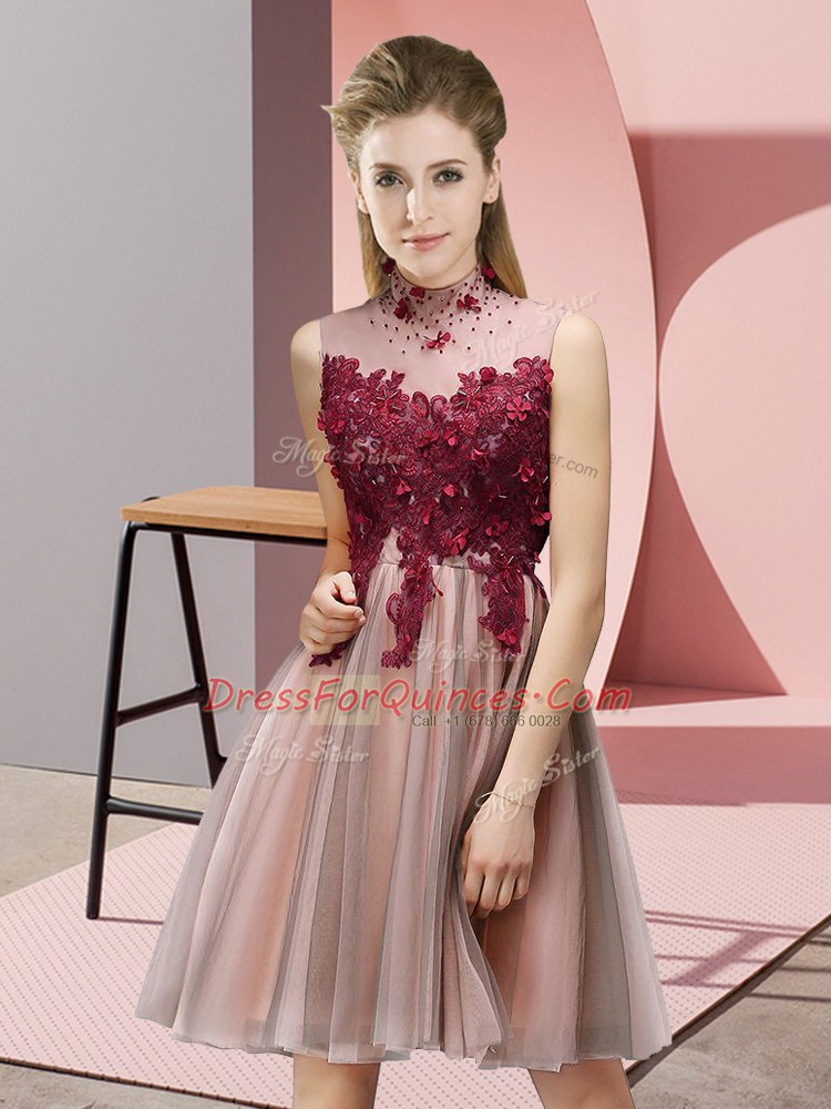 Fashion Peach Empire Appliques Damas Dress Lace Up Tulle Sleeveless Knee Length