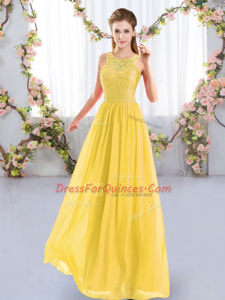 Fitting Chiffon Sleeveless Floor Length Damas Dress and Lace