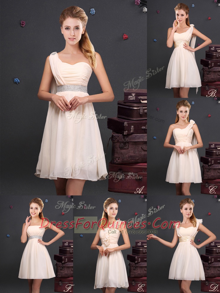 Free and Easy Sequins and Ruching Quinceanera Court of Honor Dress Champagne Zipper Sleeveless