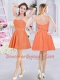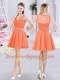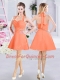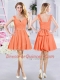 Glittering Orange A-line Chiffon Straps Sleeveless Lace and Ruching and Belt Mini Length Zipper Vestidos de Damas
