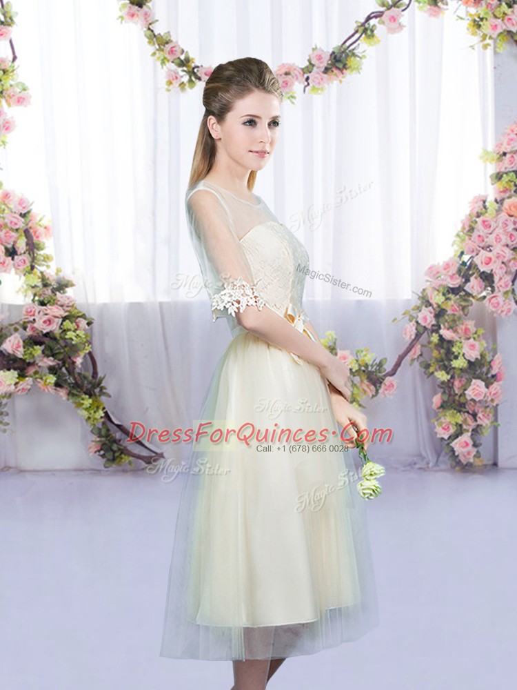 Half Sleeves Lace and Bowknot Lace Up Quinceanera Dama Dress