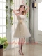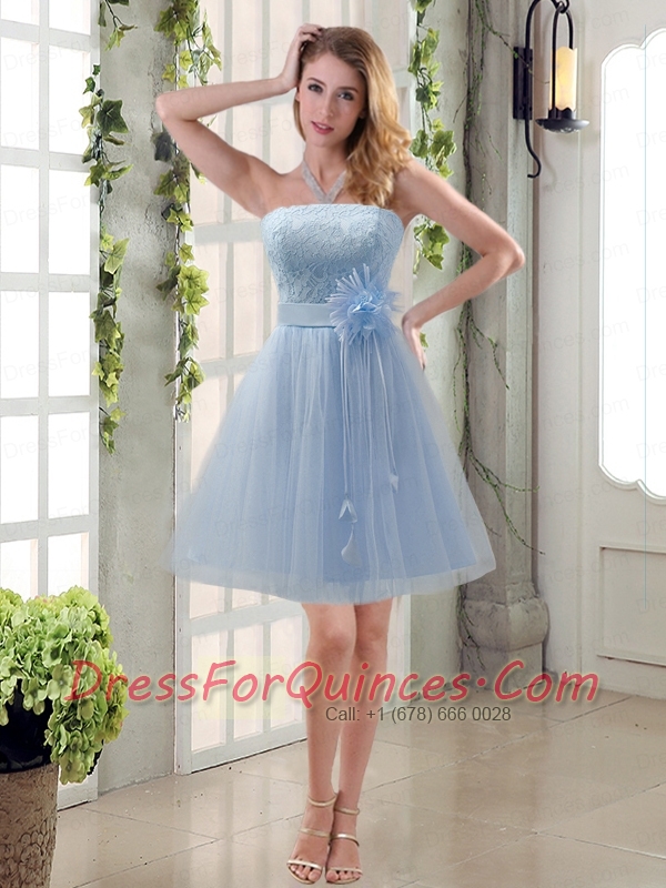 Handmade Flower Strapless Lace Dama Dress with Mini Length