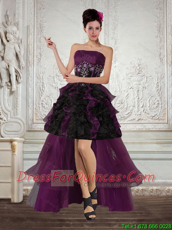 High Low Multi Color Strapless Dama Dresses with Ruffles and Embroidery