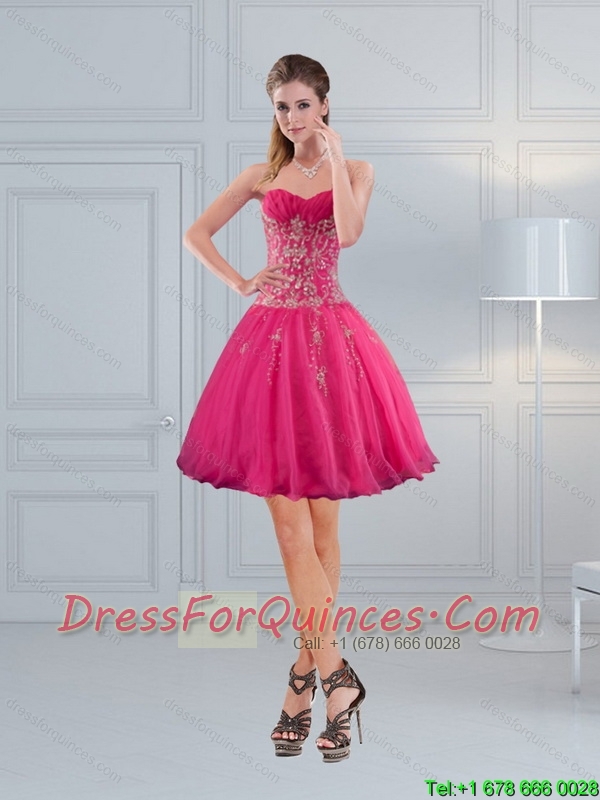 High Low Sweetheart Hot Pink 2015 Dama Dresses with Embroidery and Beading