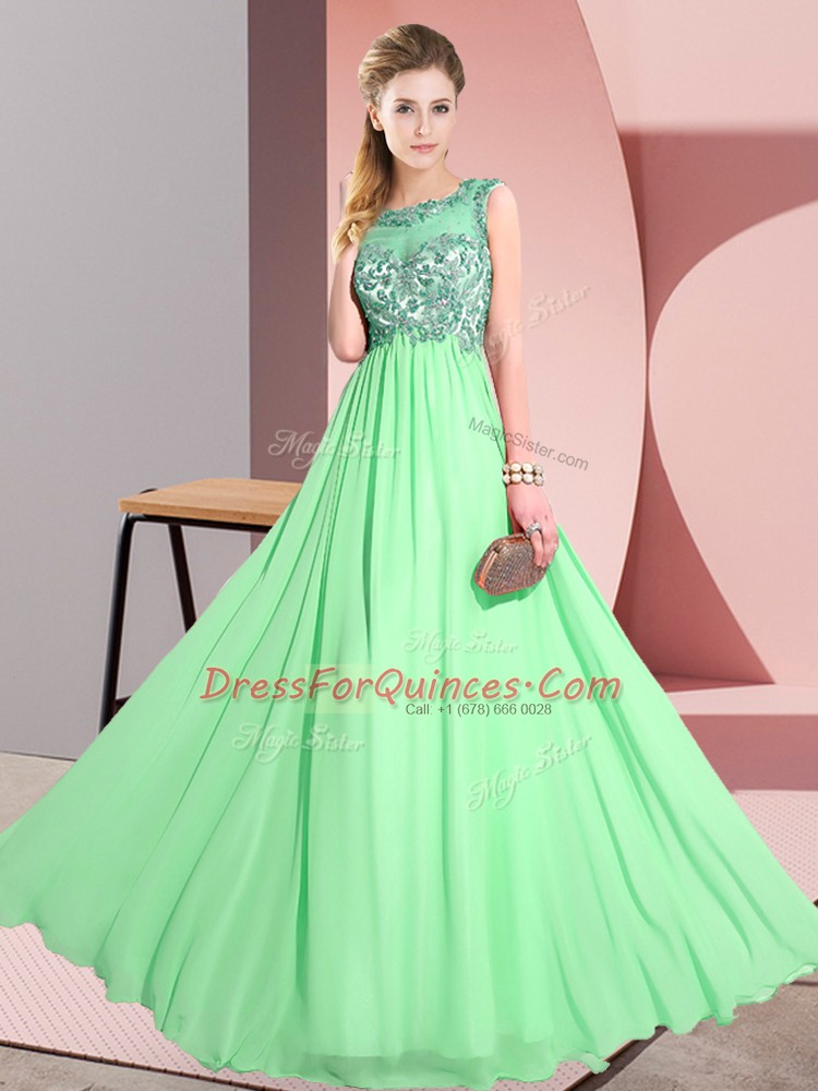 Luxurious Green Sleeveless Beading and Appliques Floor Length Quinceanera Dama Dress