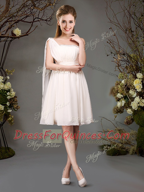 Mini Length Champagne Dama Dress One Shoulder Sleeveless Zipper