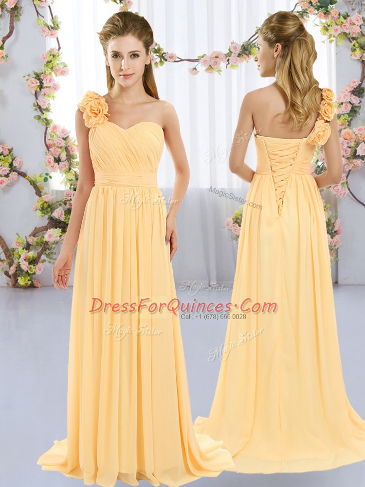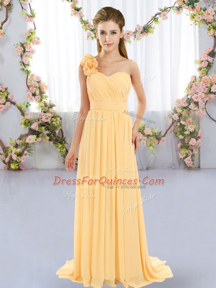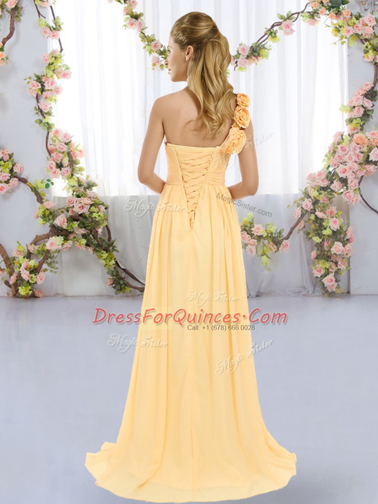 New Arrival Chiffon Sleeveless Dama Dress Brush Train and Hand Made Flower