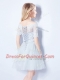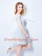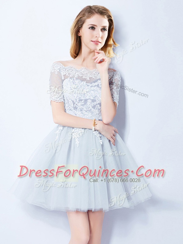 Off the Shoulder Light Blue A-line Lace Court Dresses for Sweet 16 Lace Up Tulle Short Sleeves Mini Length