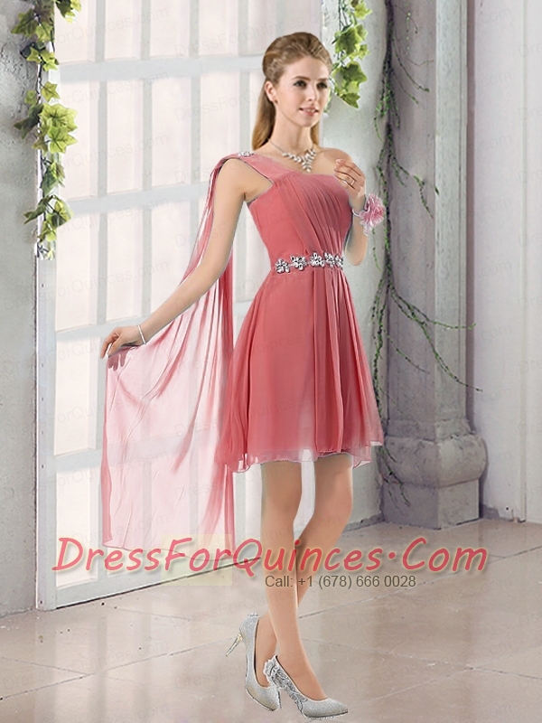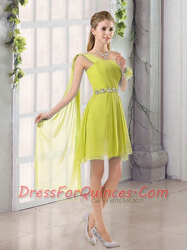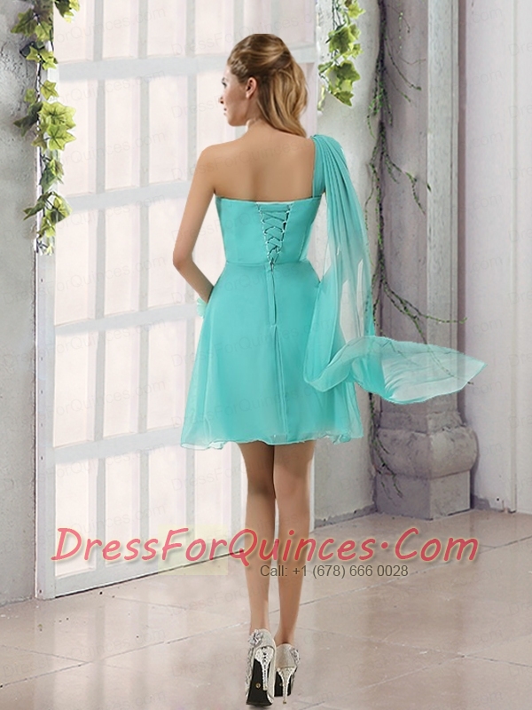 One Shoulder A Line Beading and Ruching Dama Dress with Lace Up