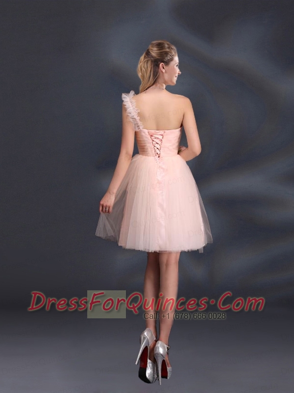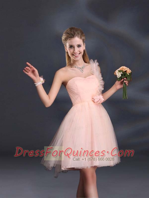 One Shoulder A Line Tulle Dama Dresses with Hand Made Flowers