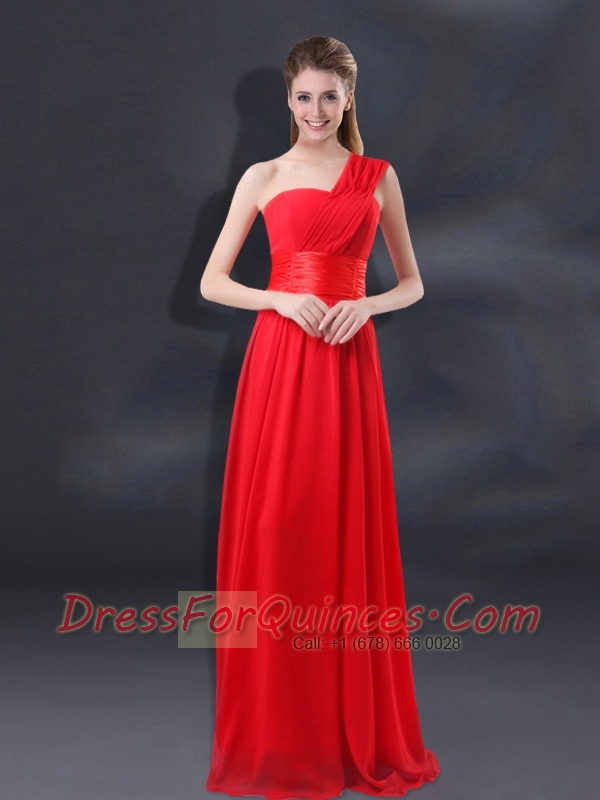 One Shoulder Ruching Empire Dama Dresses for 2015