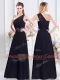 One Shoulder Sleeveless Side Zipper Dama Dress for Quinceanera Navy Blue Chiffon
