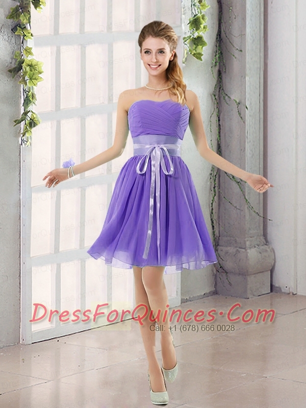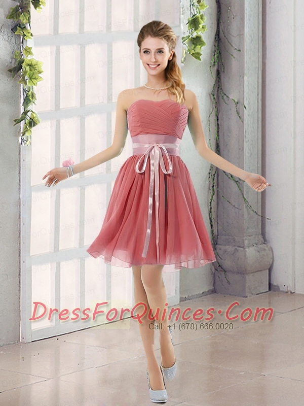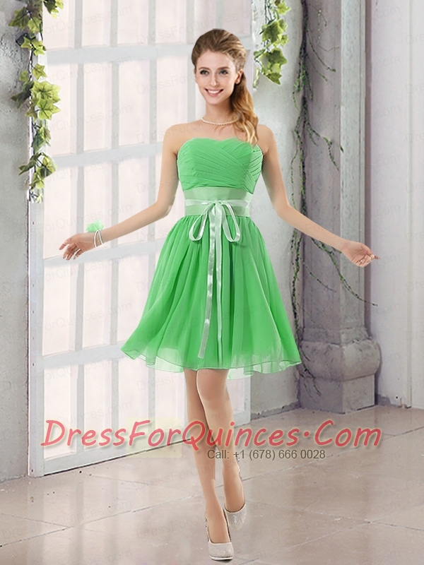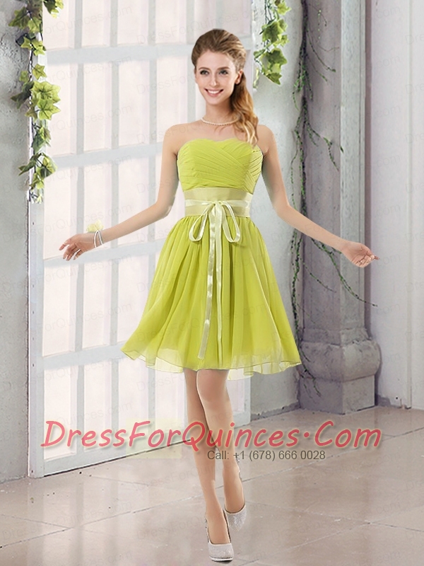 Perfect Belt Ruching Sweetheart A Line Dama Dress for 2015