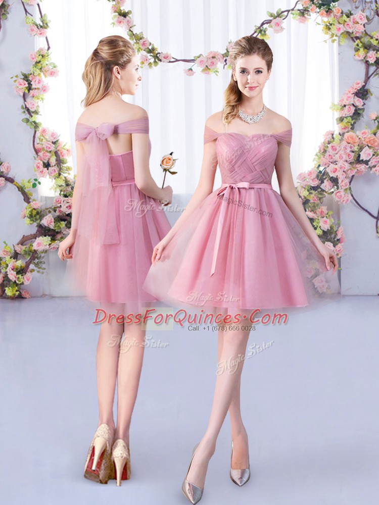 Pink Lace Up Quinceanera Dama Dress Appliques and Belt Half Sleeves Mini Length
