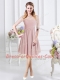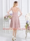 Pink Quinceanera Court of Honor Dress Prom and Party and Wedding Party and For with Lace and Ruching Scoop Half Sleeves Zipper