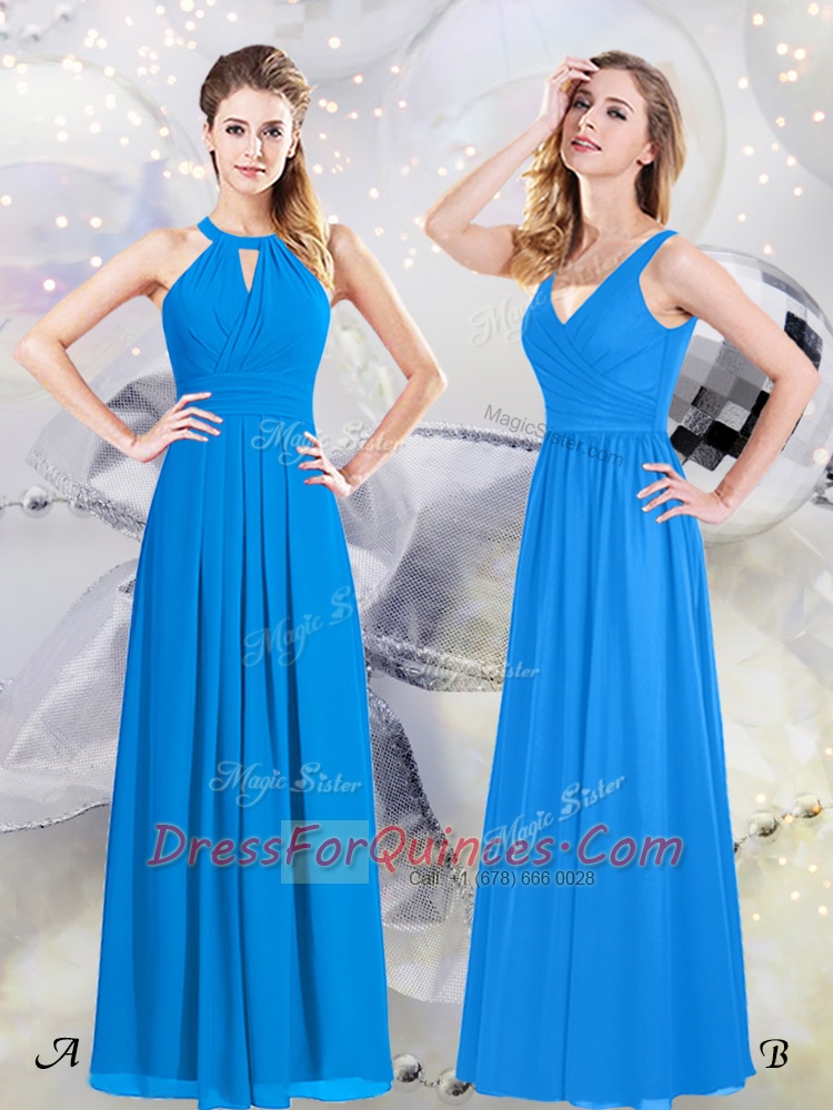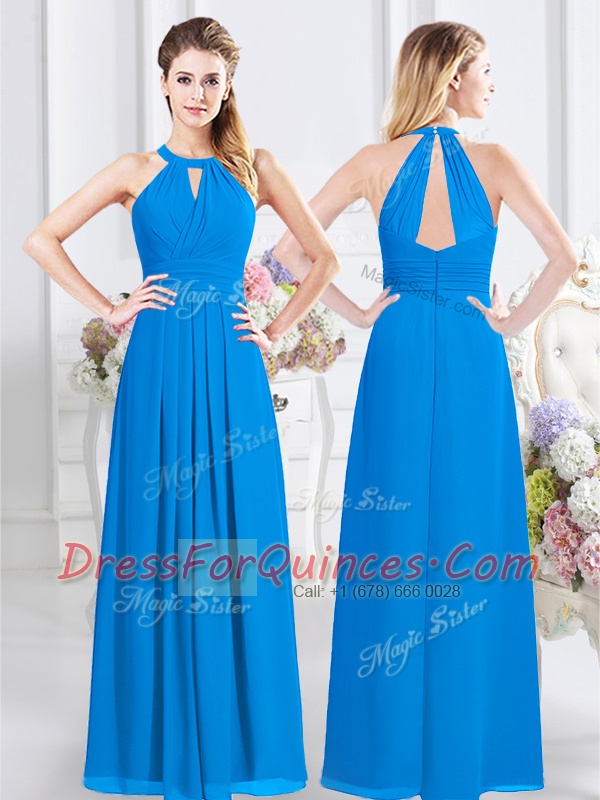 Popular Empire Quinceanera Court Dresses Baby Blue Halter Top Chiffon Sleeveless Floor Length Zipper