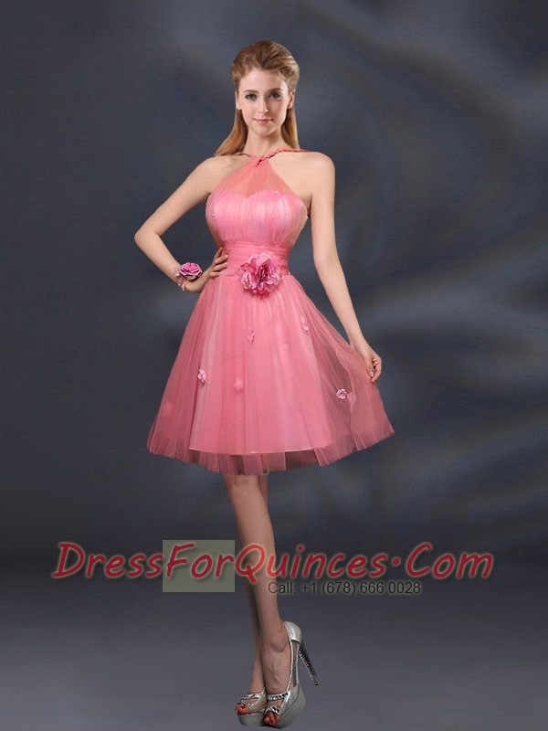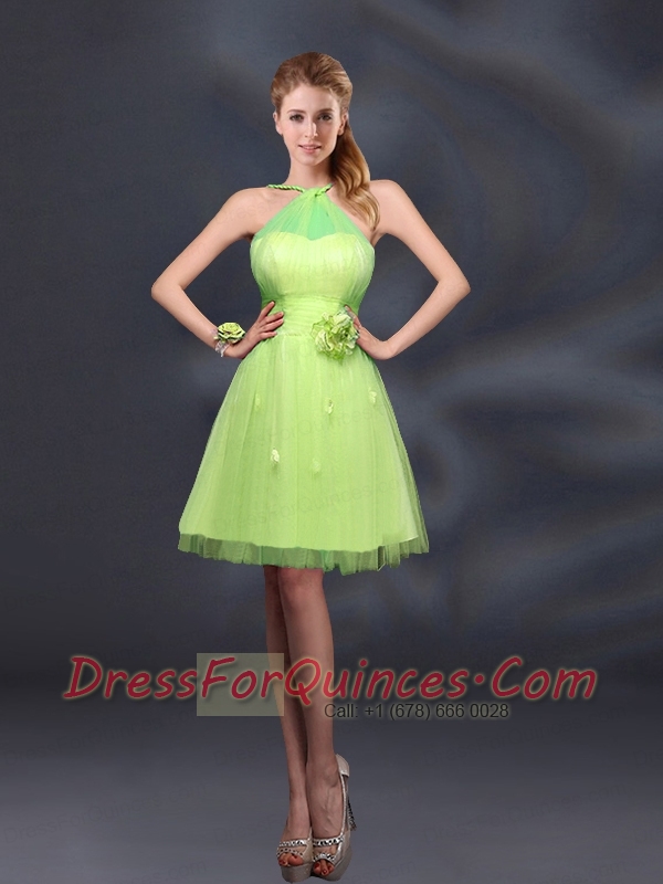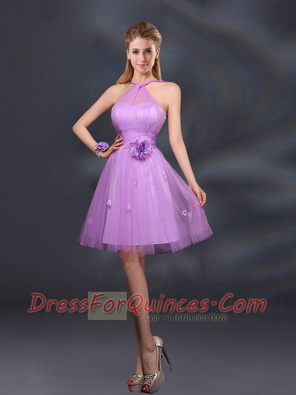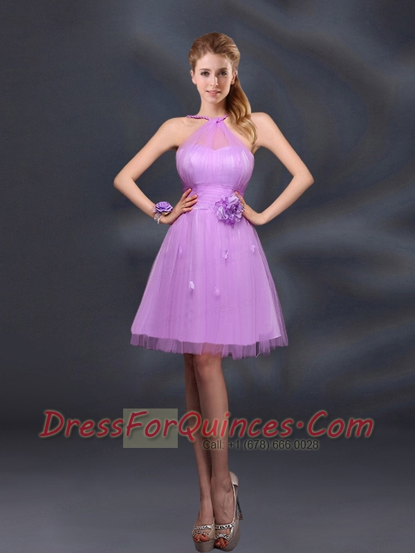 Pretty Halter A Line Dama Dresses with Hand Made Flowers