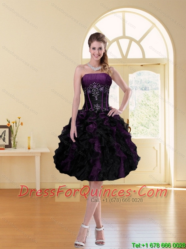 Pretty Multi Color High Low Strapless Beading Ruffled Short Dama Dresses for 2015