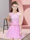 Rose Pink Scoop Neckline Lace Quinceanera Court of Honor Dress Sleeveless Side Zipper