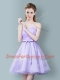 Ruching and Bowknot Quinceanera Dama Dress Lavender Zipper Sleeveless Knee Length
