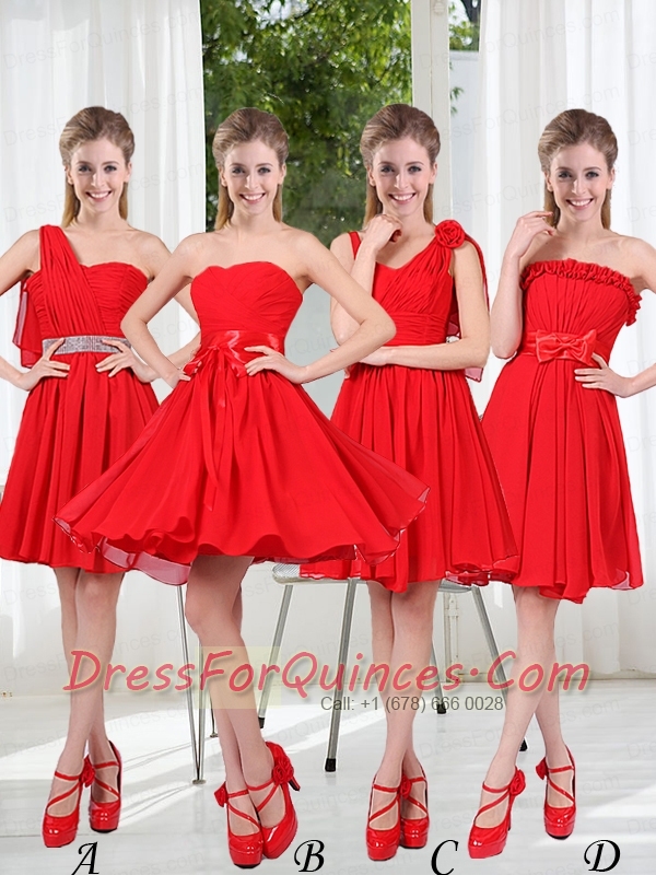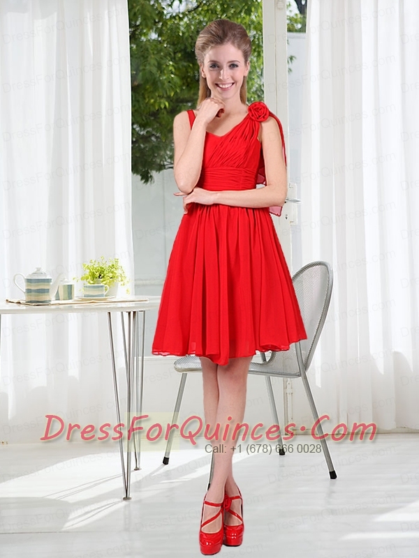 Ruching Hand Made Flowers V Neck 2015 Beautiful Dama Dresses
