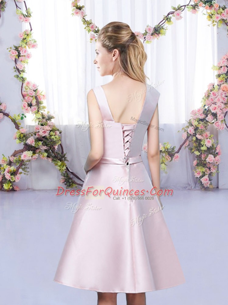 Satin Asymmetric Sleeveless Lace Up Bowknot Dama Dress for Quinceanera in Baby Pink
