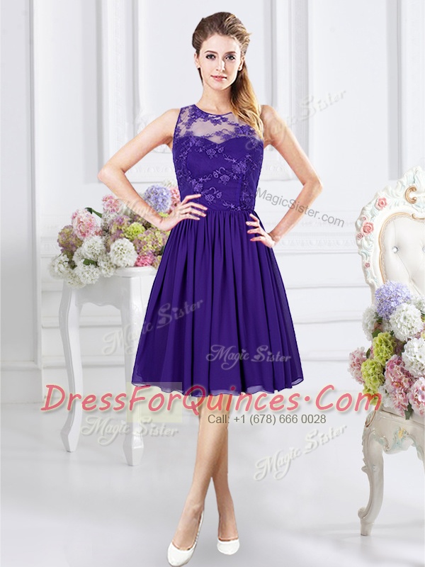Scoop Knee Length Empire Sleeveless Purple Quinceanera Court Dresses Zipper