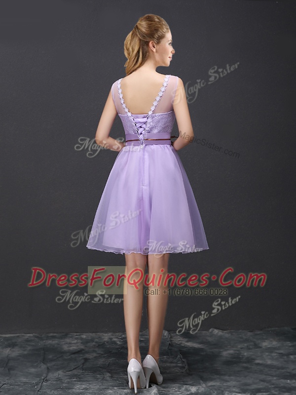 Scoop Organza Sleeveless Mini Length Vestidos de Damas and Lace