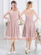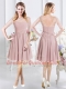 Scoop Pink Half Sleeves Lace and Ruching Knee Length Quinceanera Court of Honor Dress